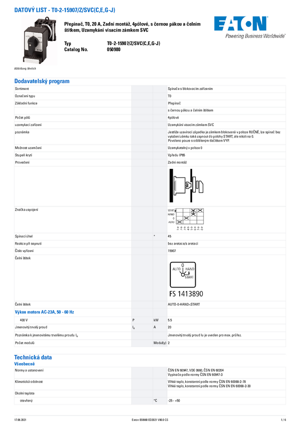 Eaton 050980 T0-2-15907/Z/SVC(C,E,G-J) Wyłącznik 1 szt.