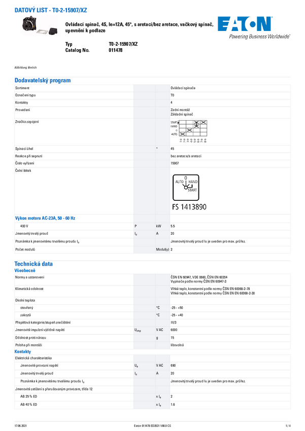 Eaton 069304 T0-2-15907/EZ Wyłącznik 1 szt.