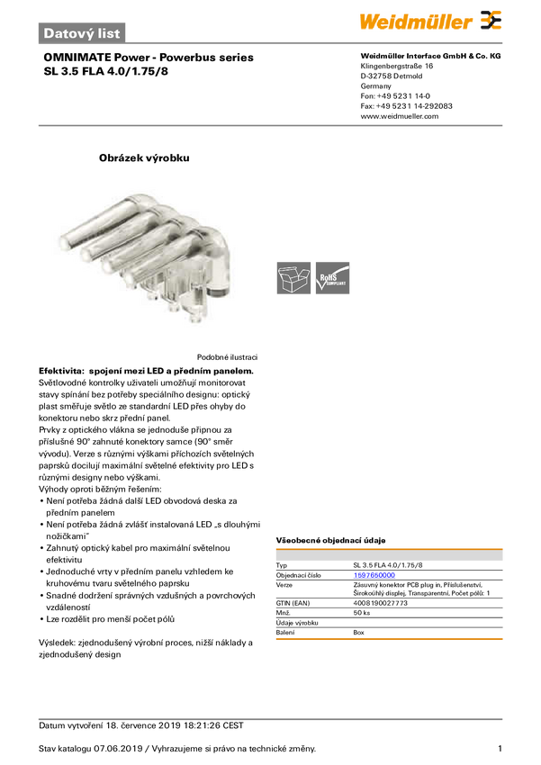 Wskaźnik iluminacyjny SL 3.5 FLA 4.0/8 1597530000 Weidmüller Zawartość: 50 szt.