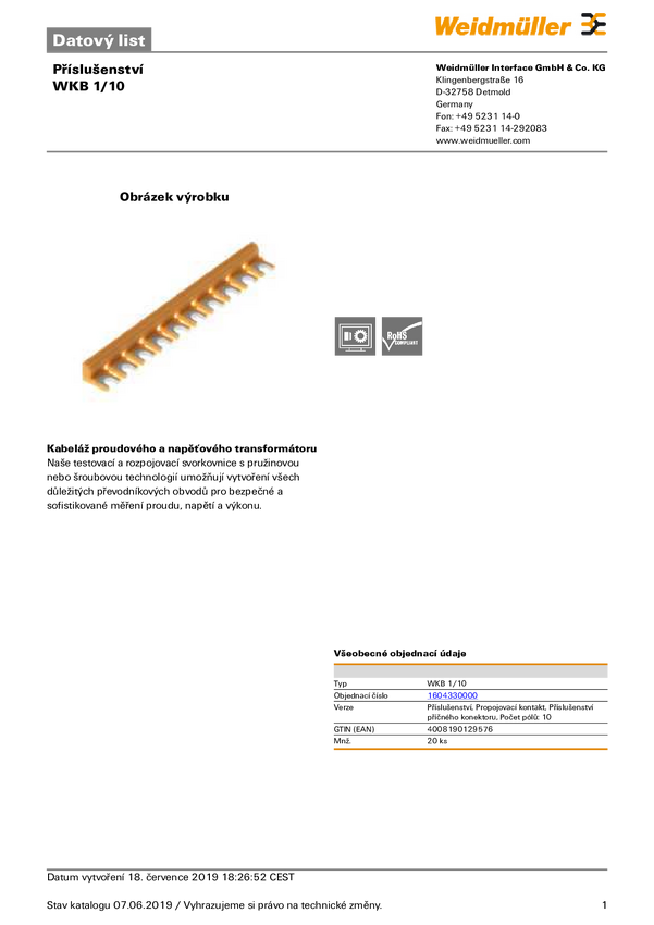 Weidmüller 1604330000 Łącznik krzyżowy 20 szt.
