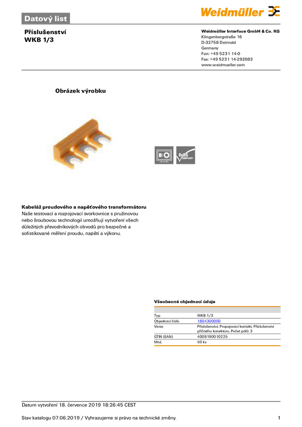 Weidmüller 1604300000 Łącznik krzyżowy 50 szt.