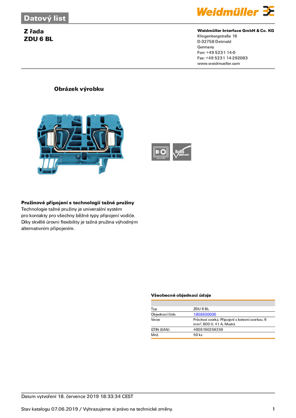 Złączka szynowa przelotowa Weidmüller 1608630000-50 sprężynowe 50 szt.