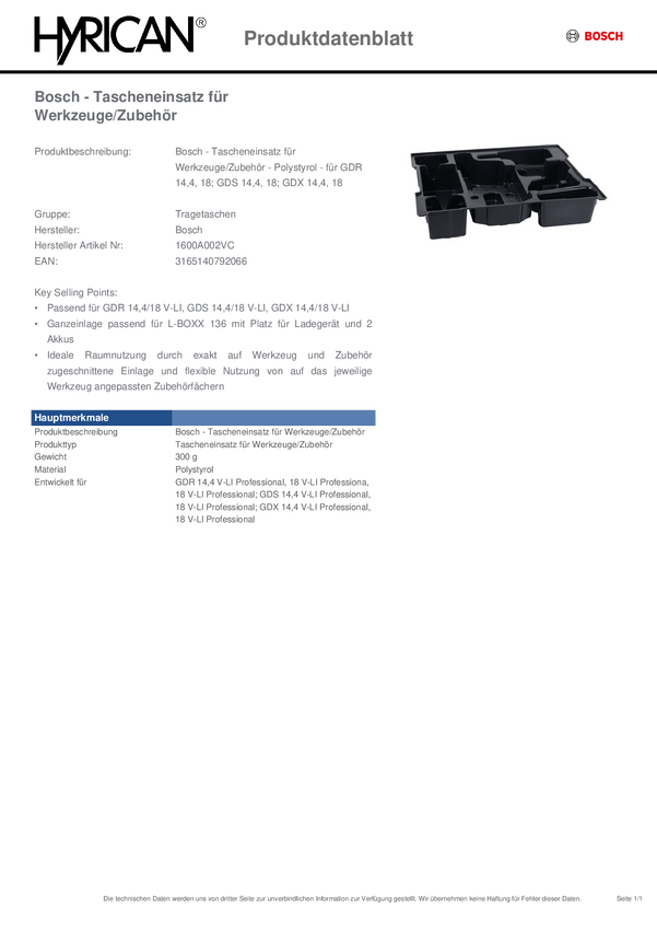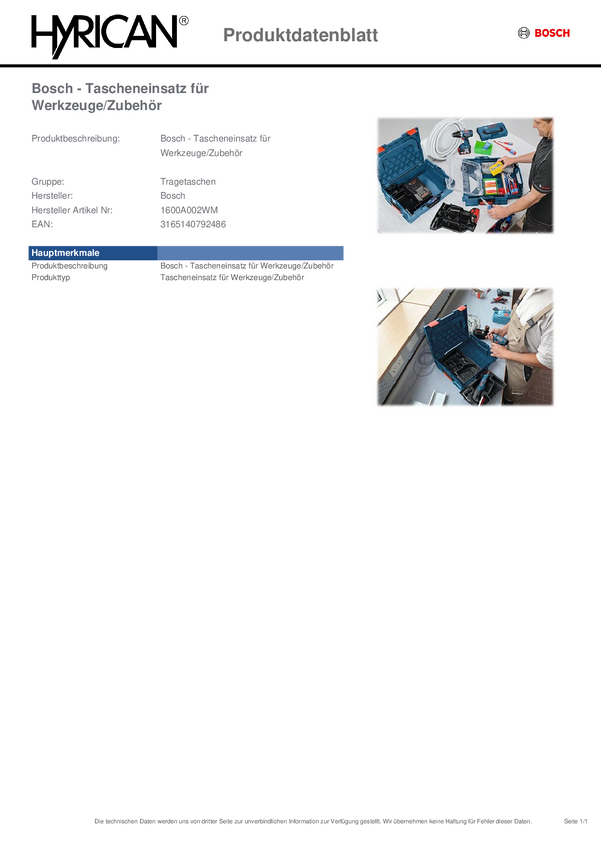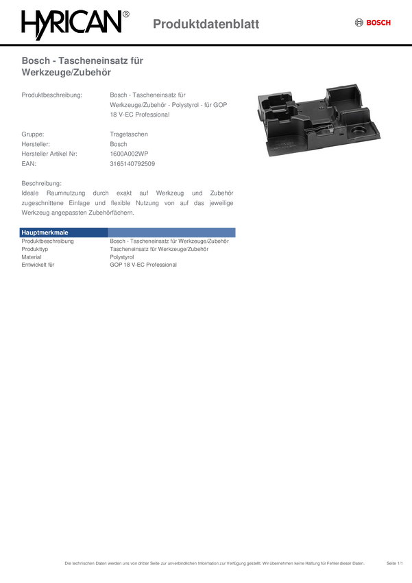wkładka Bosch Professional Bosch Power Tools 1600A002WP