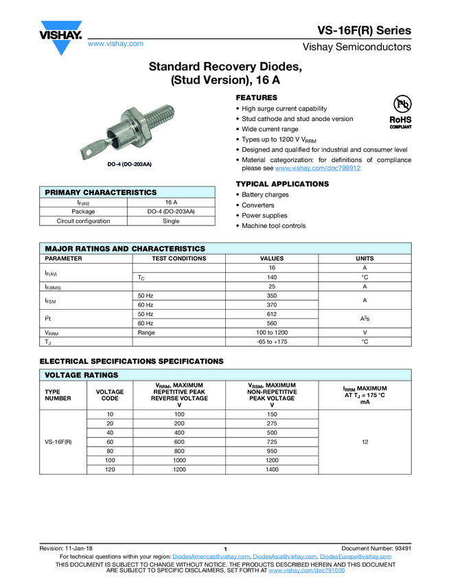 Fast Recovery Diodes (Stud Version), 6 A, 12 A, 16 A