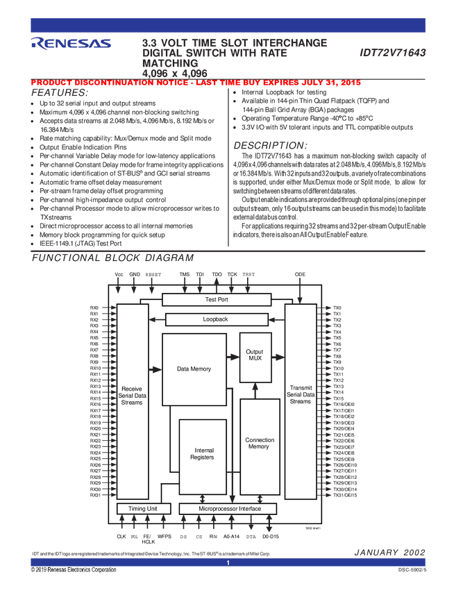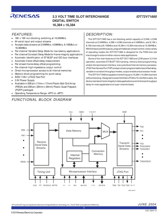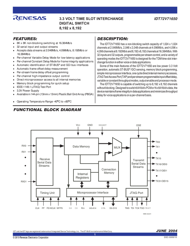 4K x 4K TSI, 32 I/O at 2/4/8 or 16Mbps, Rate-Matching, 3.3V