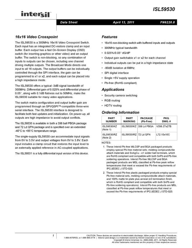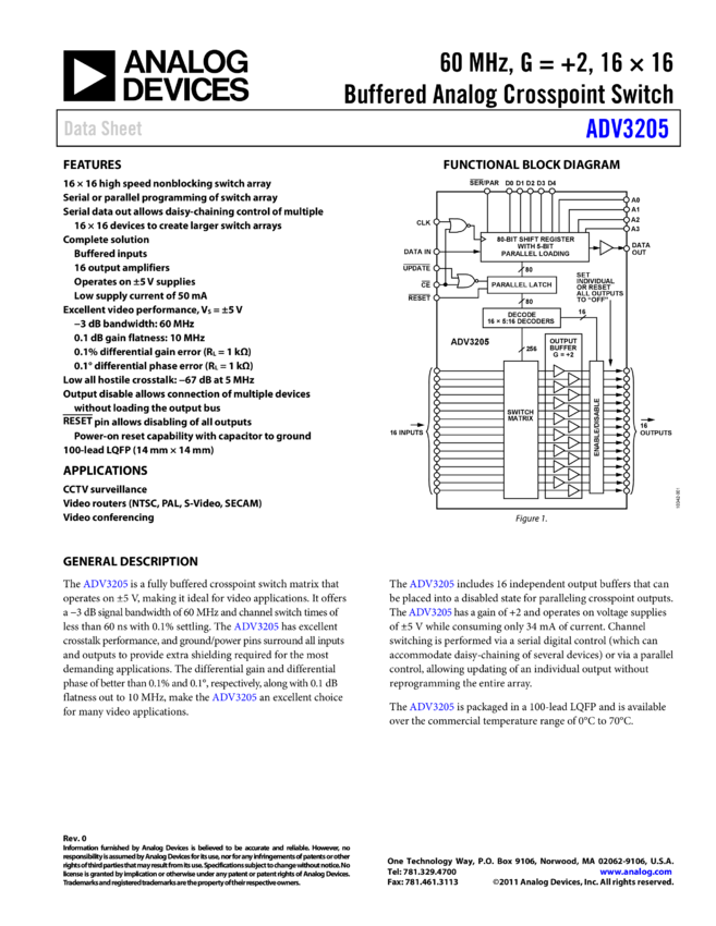 ADV3205: 60 MHz, 16x16 Buffered Analog Crosspoint Switch