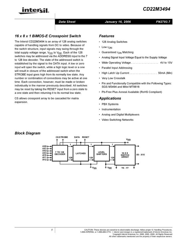 Triple 16x5 Differential Crosspoint Switch Capable of Operation in Single-Ended or Differential Input Modes