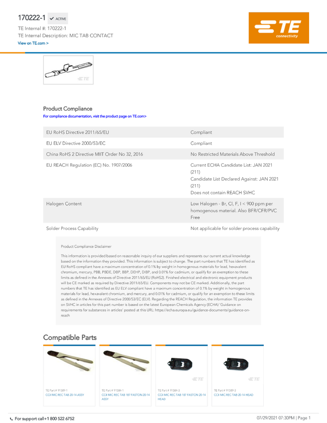 TE Connectivity 170222-1 TE AMP Others - Miscellaneous, 1 szt.
