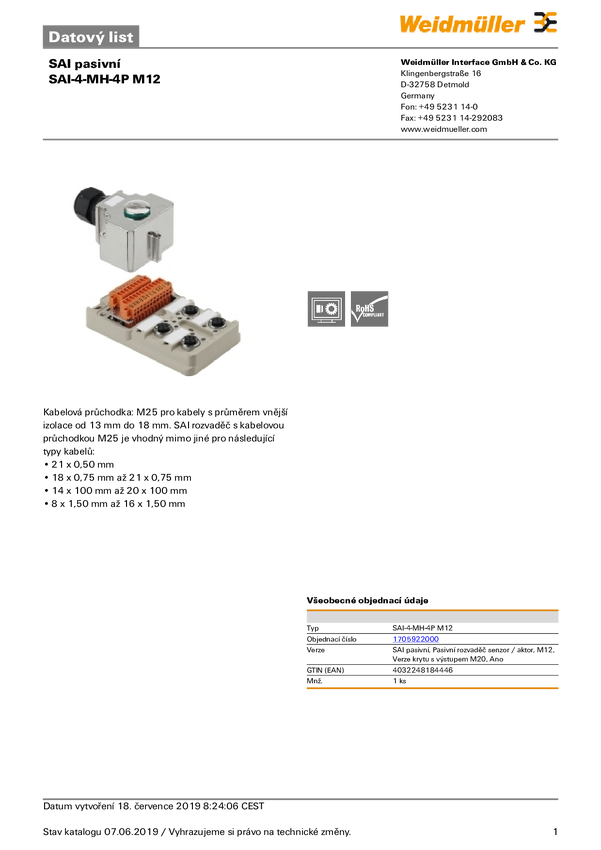 Rozdzielacz czujnik / element wykonawczy, pasywny Weidmüller SAI-4-MH-4P M12 1705922000 1 szt.