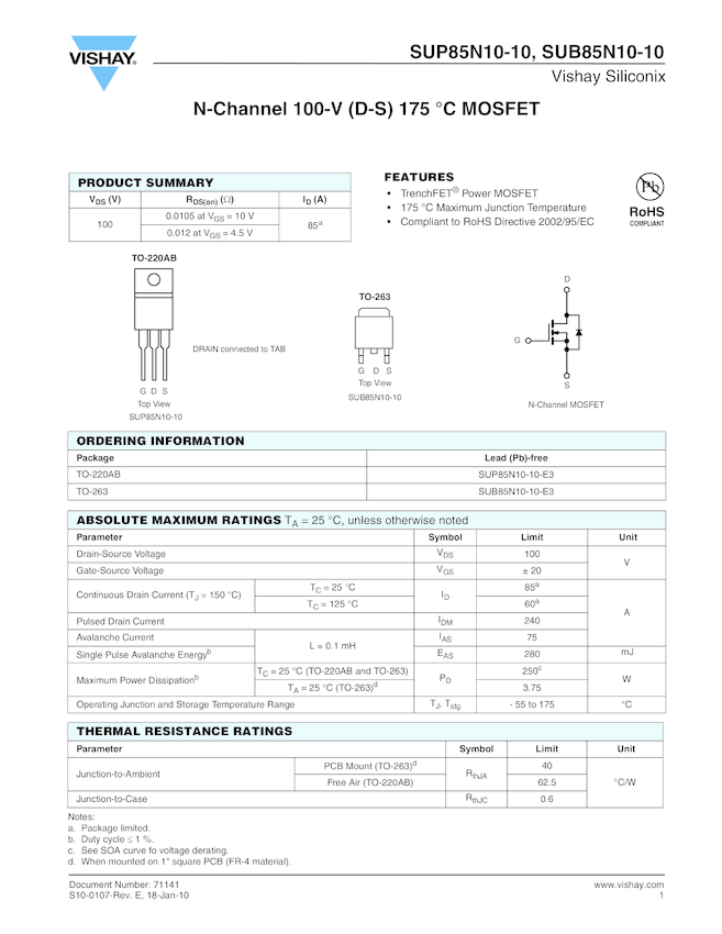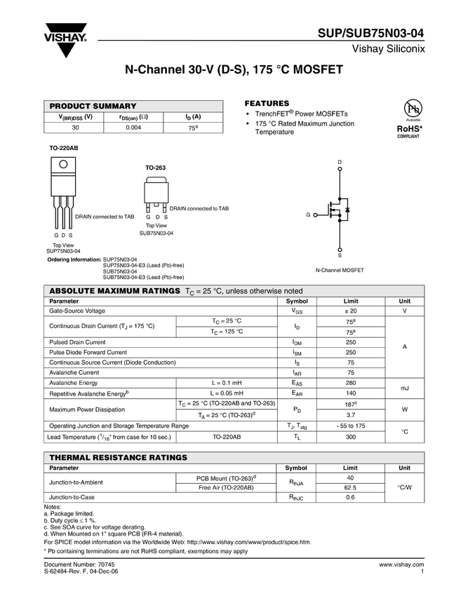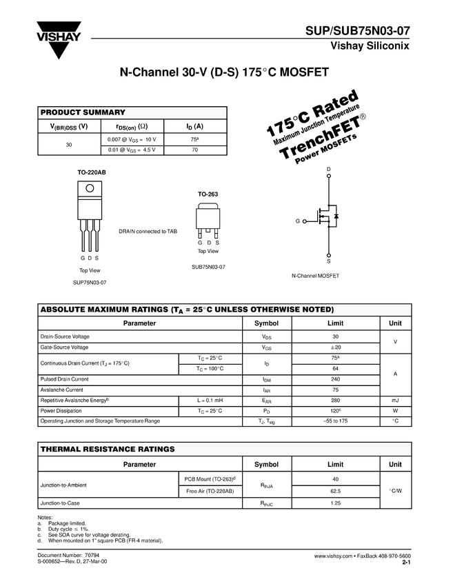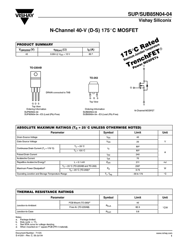 N-Channel 150 V (D-S) 175 °C MOSFET