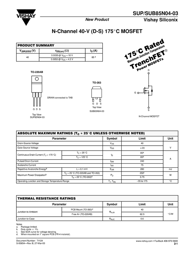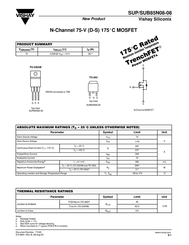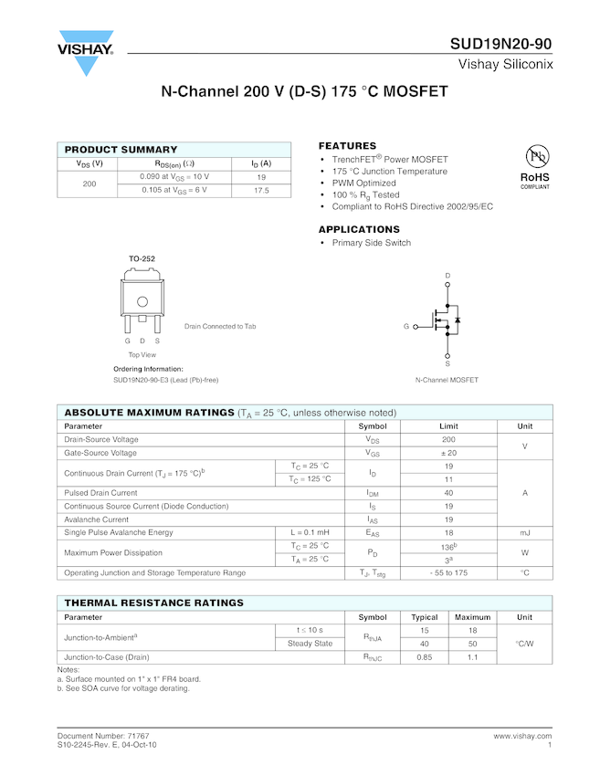N-Channel 200 V (D-S) 175 °C MOSFET