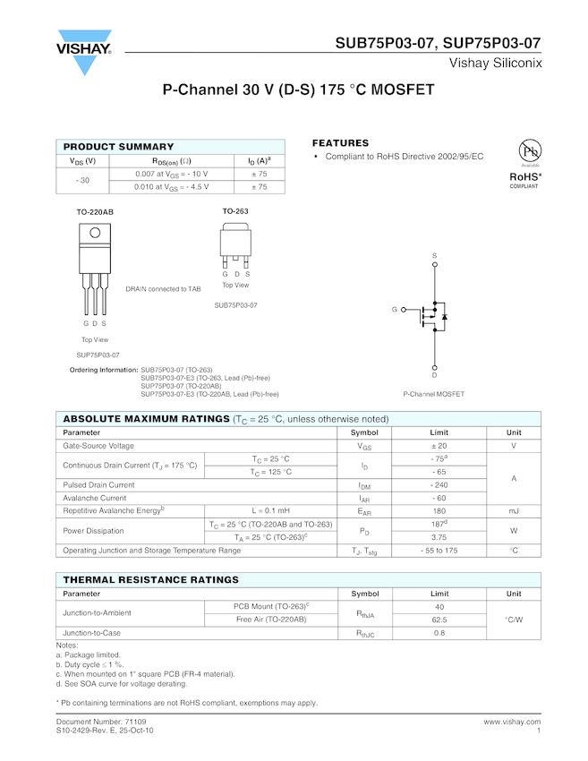 P-Channel 30 V (D-S) 175 °C MOSFET
