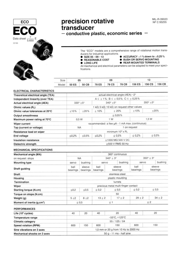 Potencjometr Servo 09; Rezystancja 1 kohm; tol.rez.20%;lin 2%; średnica 22,23mm; 150RPM; 1 obrotowy; gł.12,4mm+styki; ośka 3,175mm dł. 12,7mm; kąt.el.340 st; mech.360st; trwałość 20 mil.cykli; moc 1W; do wycz. magazynu