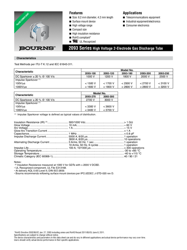 Surge Arrestor 2-Electrode Gas Discharge Tube 1800VDC 5kA SMD T/R