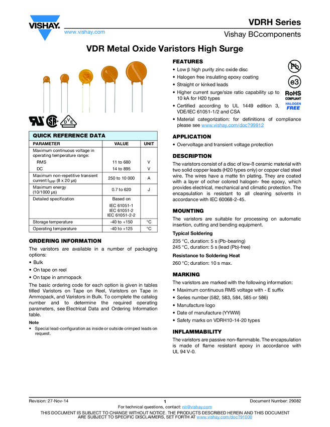 Var MOV 140VAC/180VDC 6000A 220V Radial Bulk