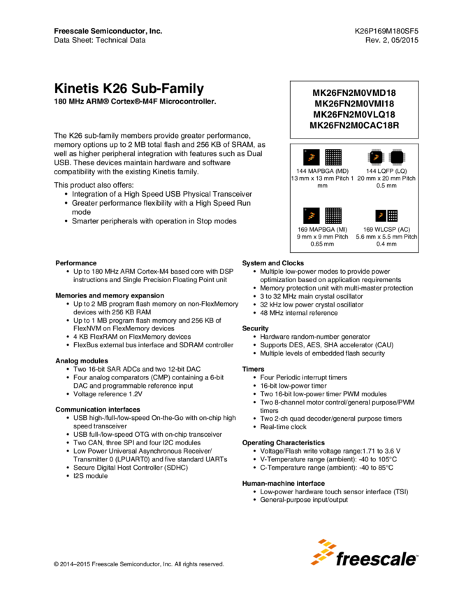 Kinetis K26: 180MHz Cortex-M4F 1/2MB Flash (144-169pin)