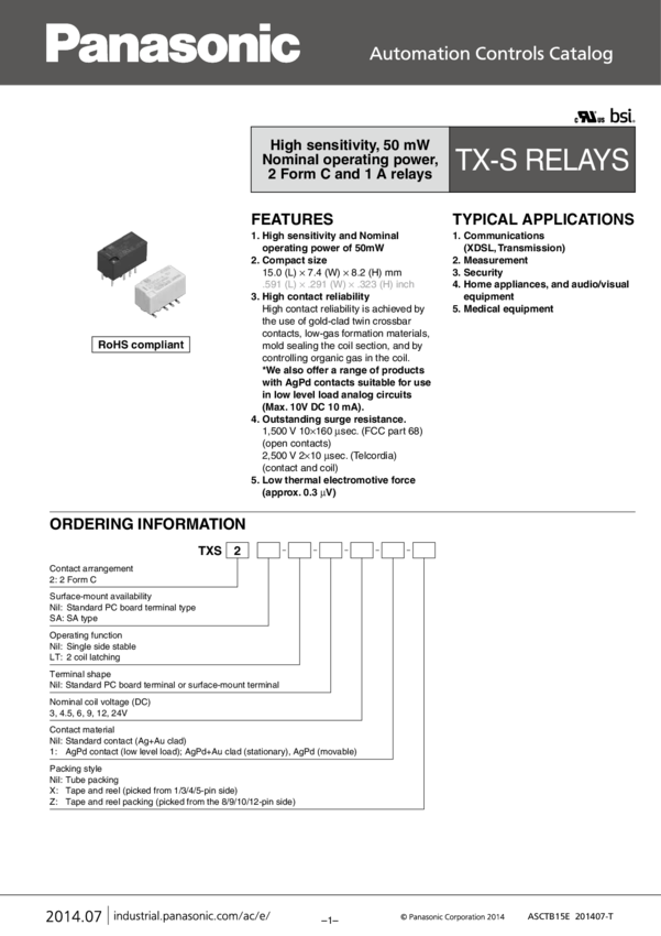 Electromechanical Relay SPDT 1.25A 9VDC 180Ohm Through Hole