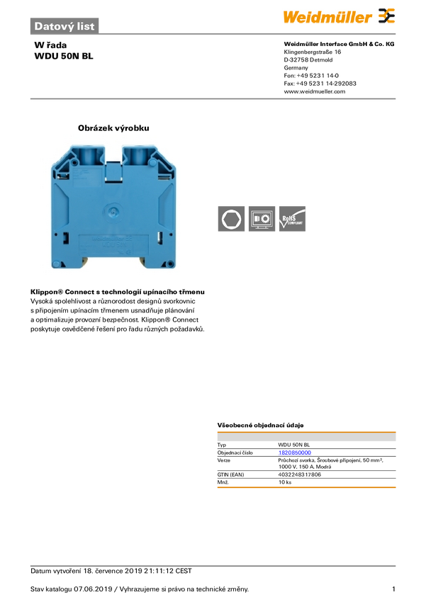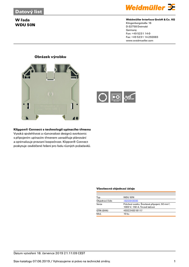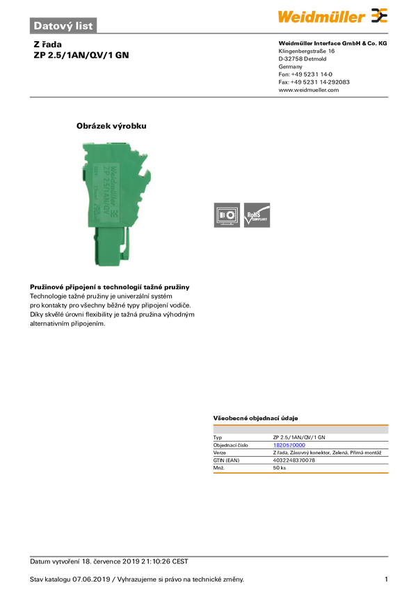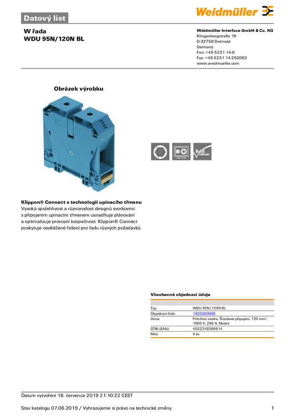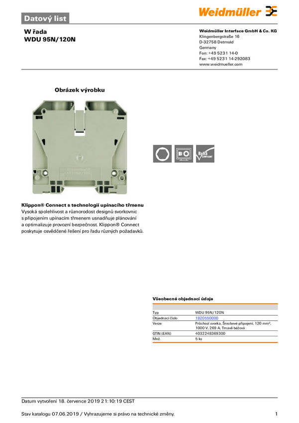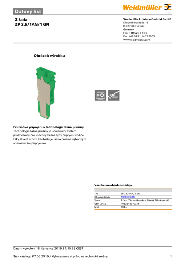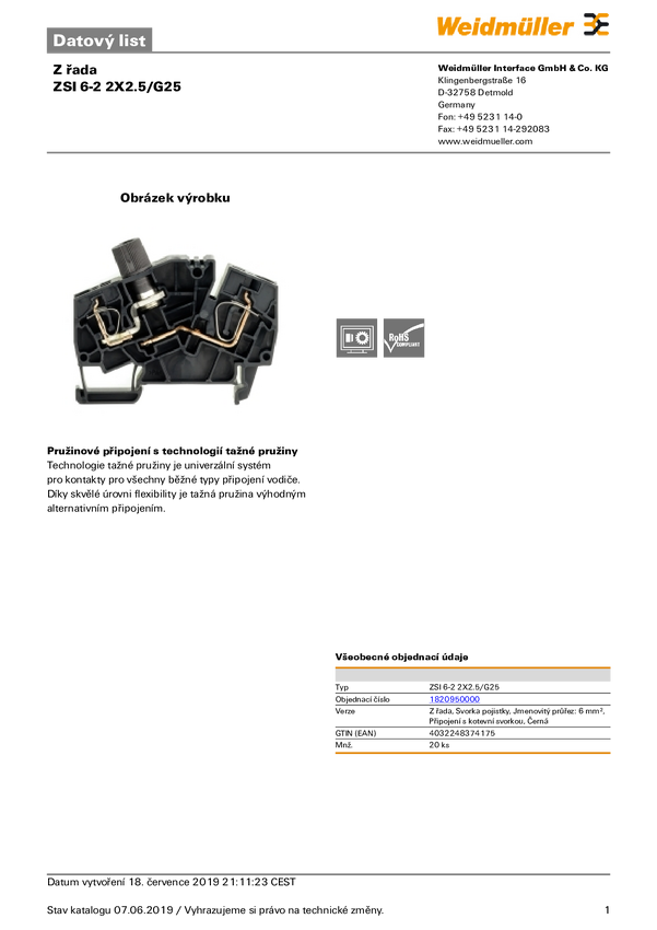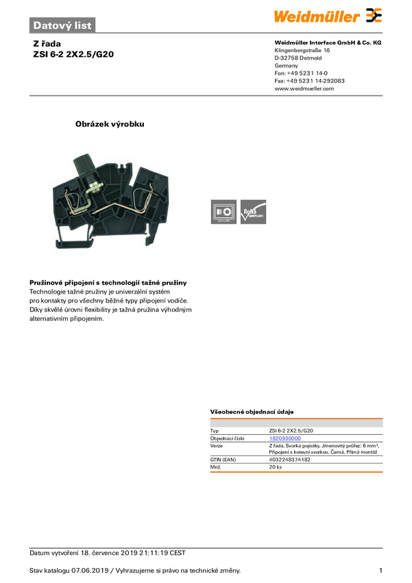 Zacisk szynowy bezpiecznika Weidmüller 1820950000 sprężynowe 20 szt.