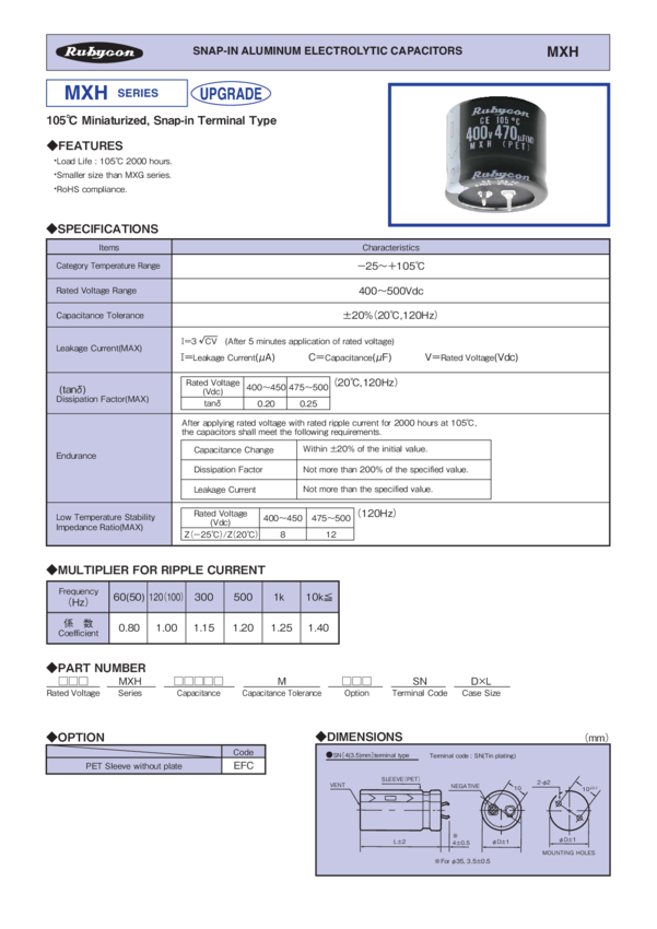 Cap Aluminum 330uF 450V 20% (25 X 50mm) Snap-In Aluminum Cylindrical Can 10mm 1820mA 2000 hr 105°C Bulk
