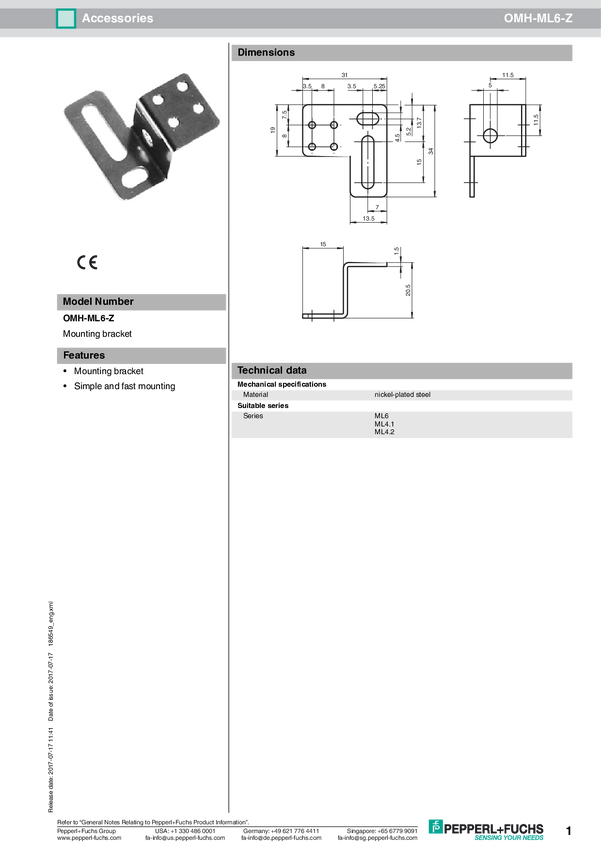 Pomoc montażowa Pepperl+Fuchs OMH-ML6-Z 186549 5 szt.