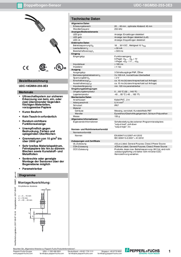 Czujnik ultradźwiękowy Pepperl+Fuchs 186657 1 szt.