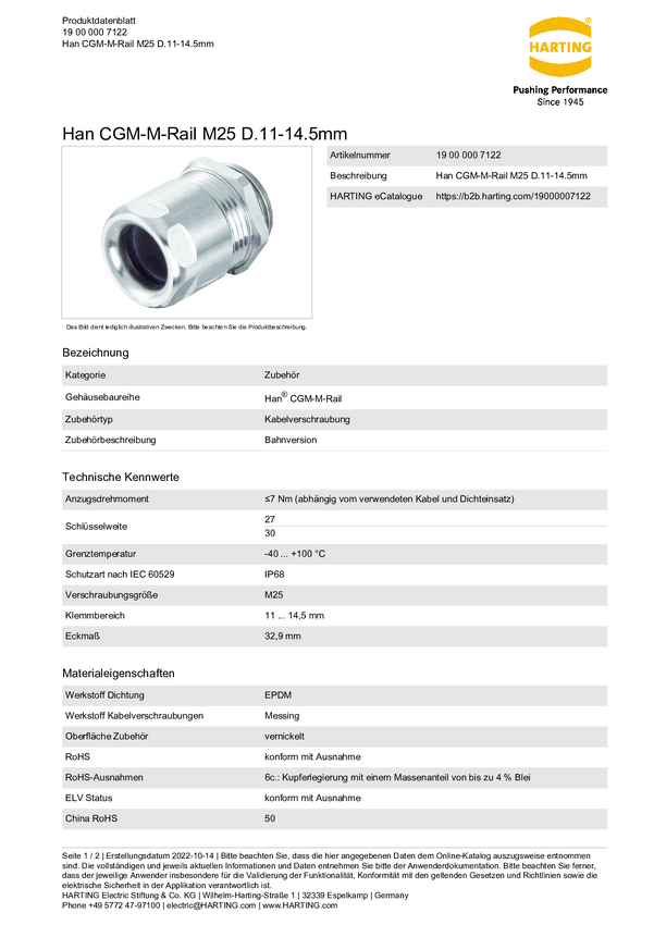 Złącze przemysłowe 19000007122 Harting Zawartość: 1 szt.