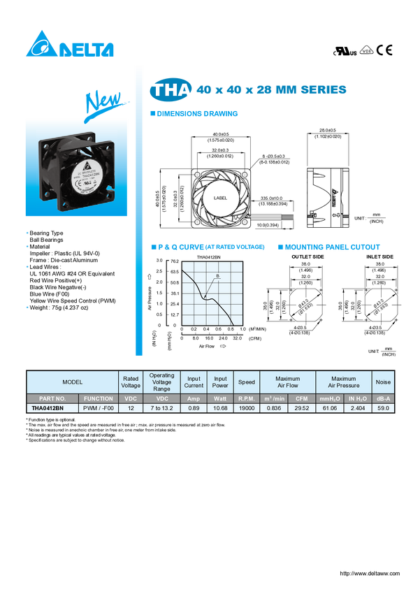 Wentylator 40x40x28 12VDC 7-13,2 V DC Ball 10,7W 0,89A 0,826m3/min 59dB(A) 19000 RPM 4 wire Leads, PWM controll Speed Sensor ( Tach) Uwaga:zdjęcie podobnego Uwaga:dostawa 2-4 tyg dla 10 sztuk, ilość mniejsza dostawa dłuższa