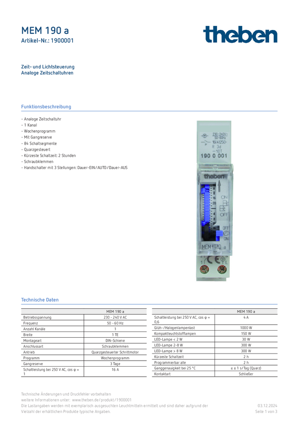 Theben 1900001 Przekaźnik czasowy na szynę DIN