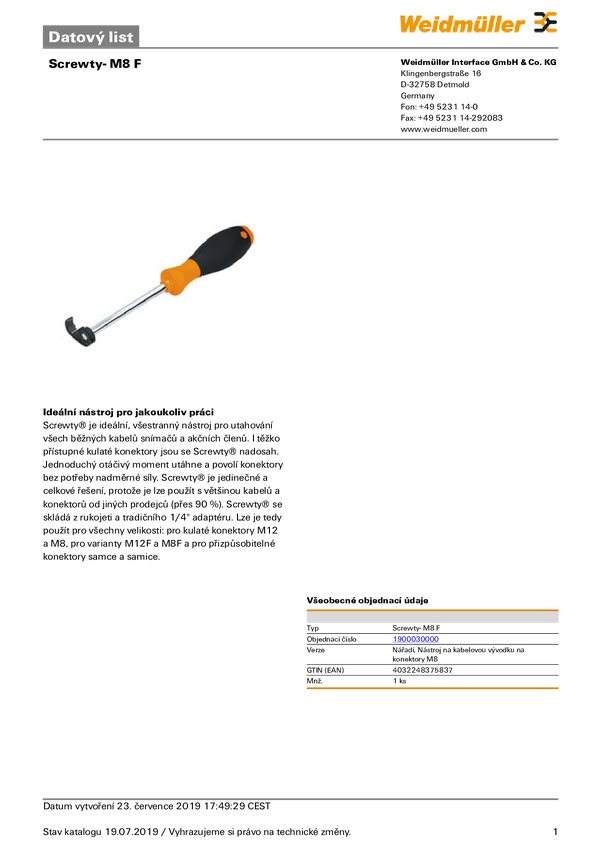 Przyrząd do wypinania kabli Weidmüller SCREWTY- M8 F 1900030000 1 szt.
