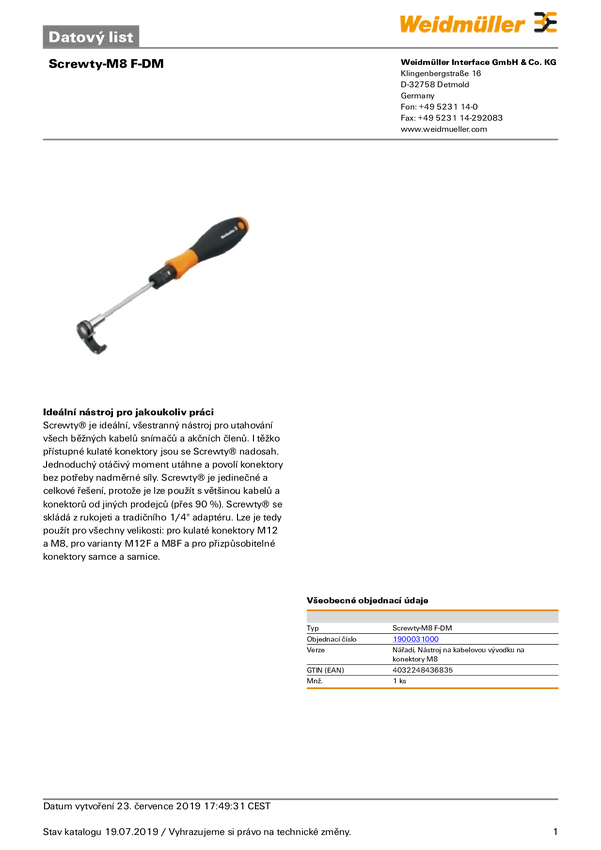 Przyrząd do wypinania kabli Weidmüller SCREWTY-M8 F-DM 1900031000 1 szt.