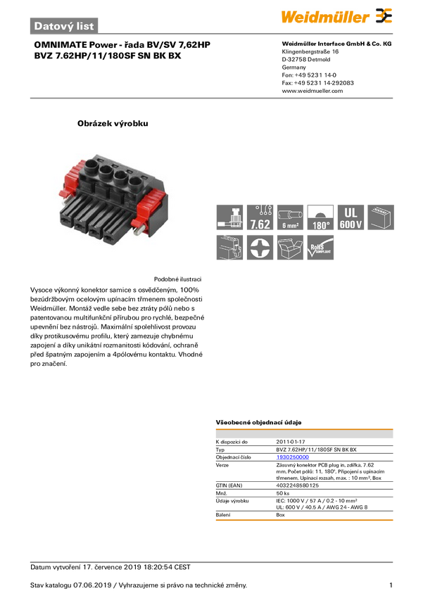 Weidmüller 1930250000 Złącze męskie PCB Łączna ilość styków 11 Ilość rzędów 1 50 szt.