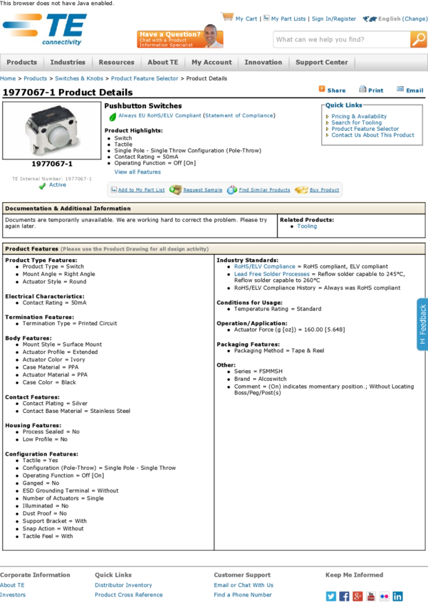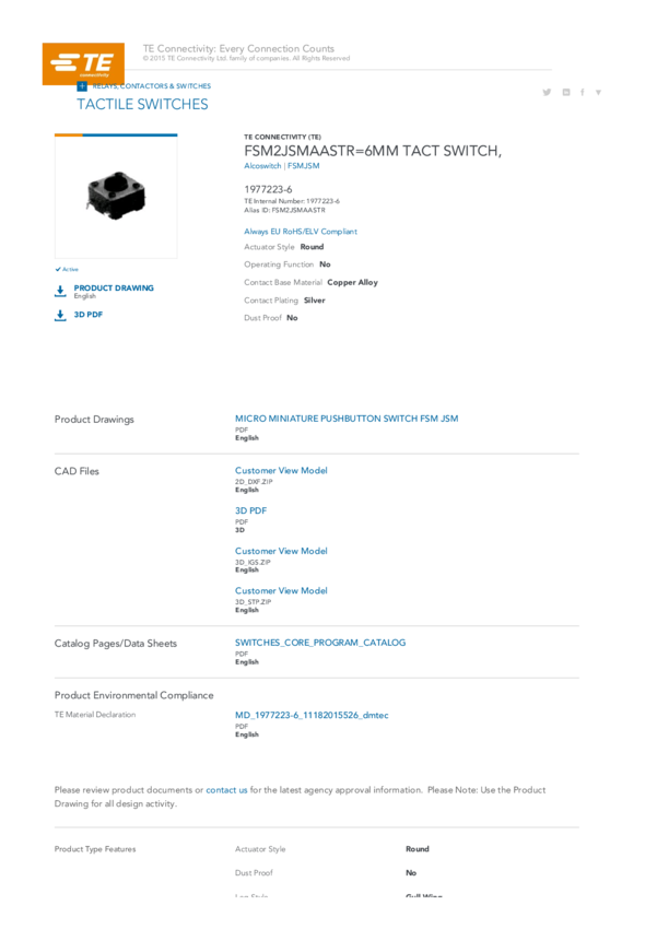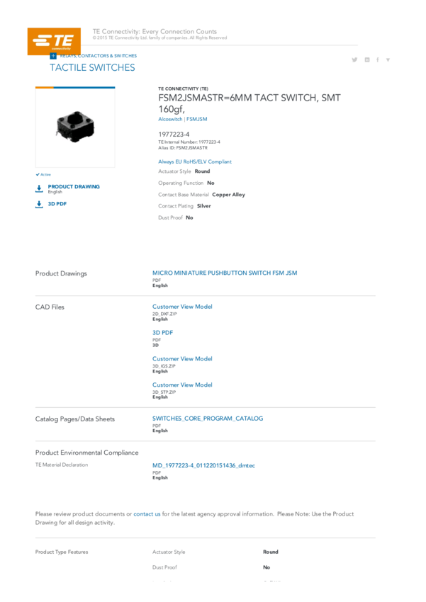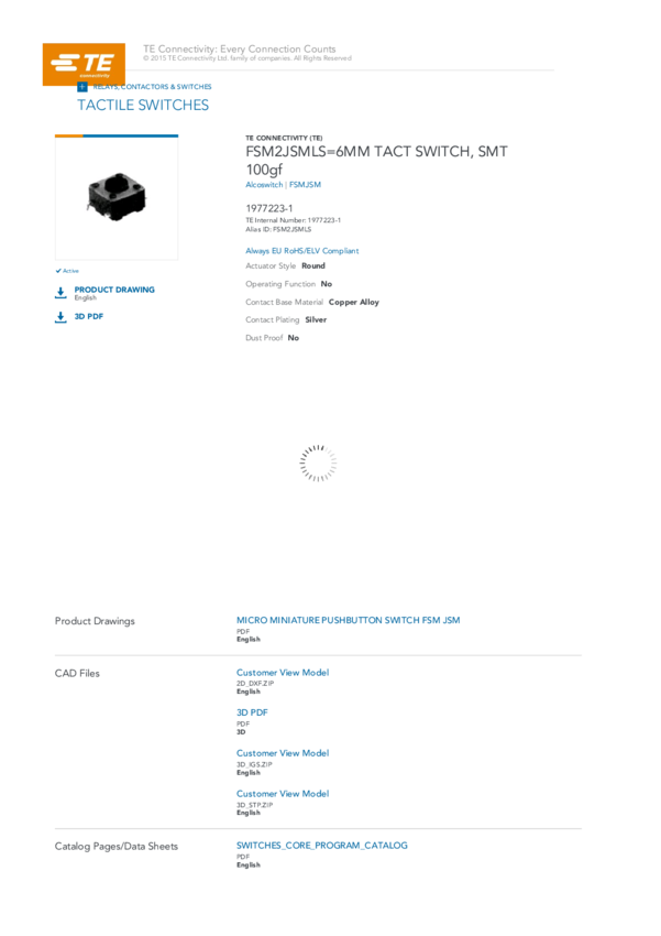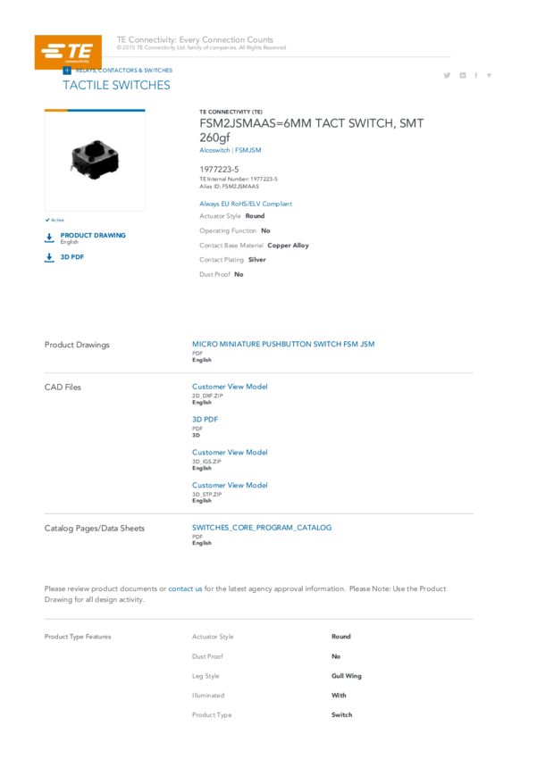 Switch Tactile OFF (ON) SPST Round Button Gull Wing 0.05A 24VDC 1000000Cycles 0.98N SMD T/R
