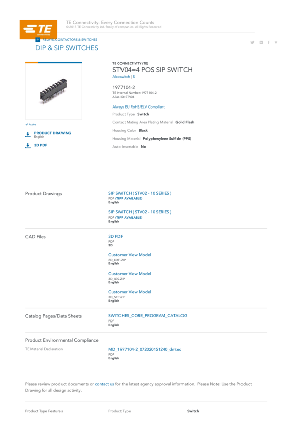 Switch DIP OFF ON SPST 4 Flush Slide 0.01A 5VDC PC Pins 2.54mm Thru-Hole