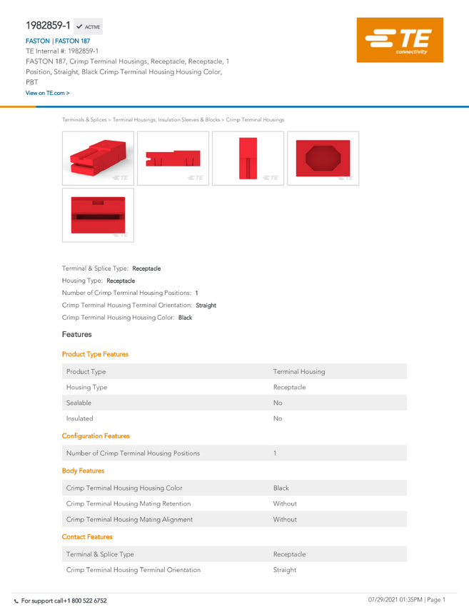 TE Connectivity 1982859-1 TE AMP FASTIN-FASTON, 1 szt.