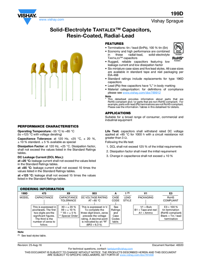 Solid-Electrolyte TANTALEX™ Capacitors, Resin-Coated, Radial-Lead
