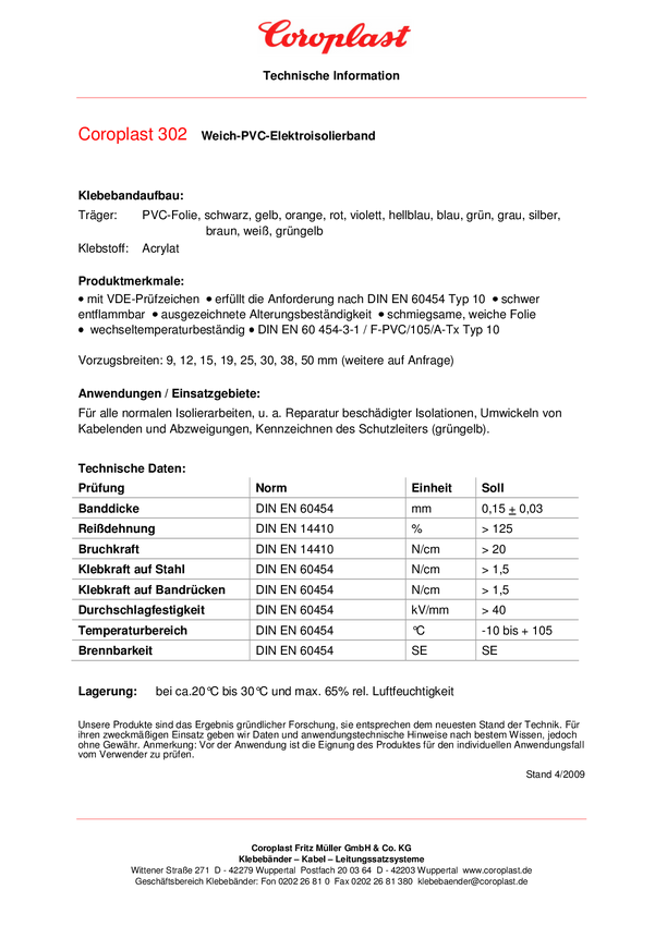 Taśma PVC Coroplast 302-25-19BK (D x S) 25 m x 19 mm 25 m 1 szt.