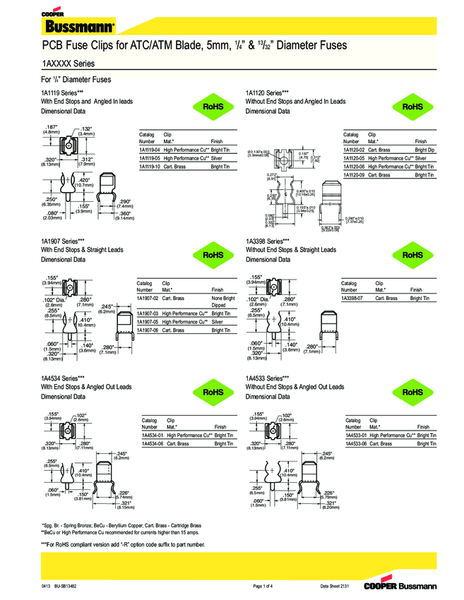 Fuse Clip 15A 500VAC Lug Through Hole Bulk