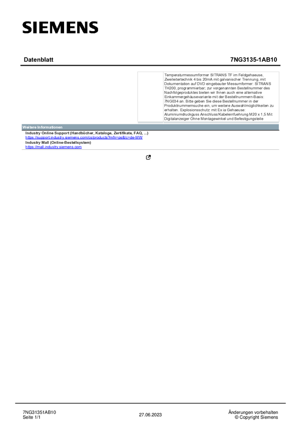 Siemens 7NG3135-1AB10 7NG31351AB10