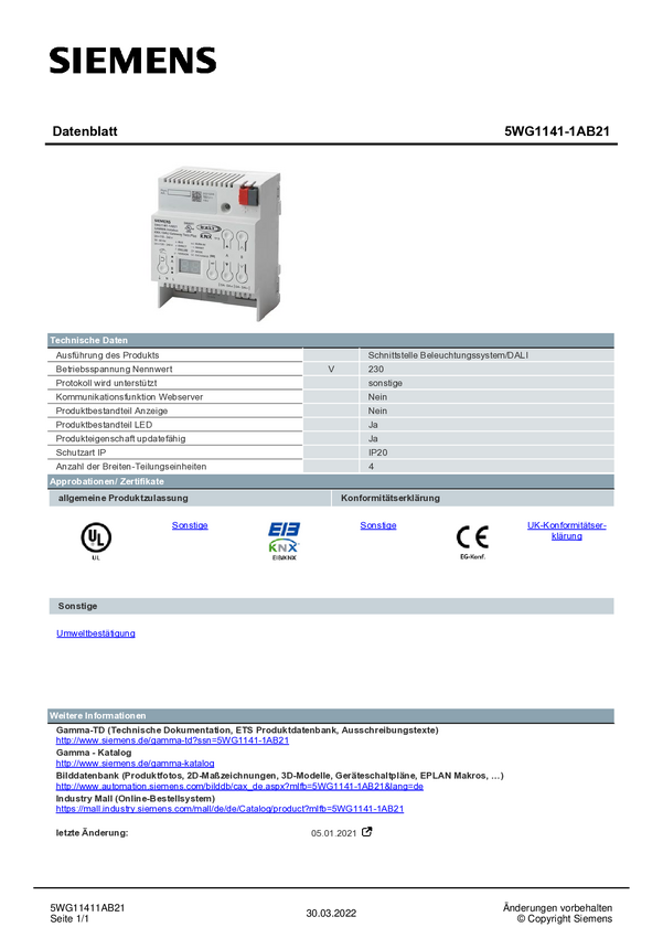 Bramka (Gateway) Siemens 5WG11411AB21 5WG1141-1AB21