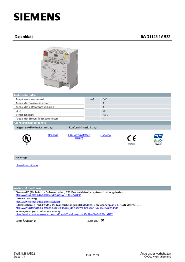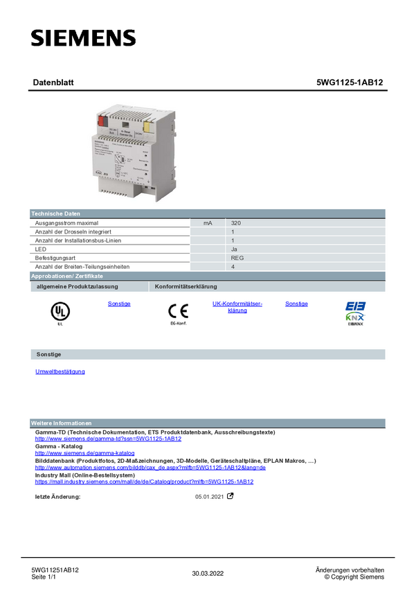 Zasilacz Siemens 5WG11251AB22 5WG1125-1AB22