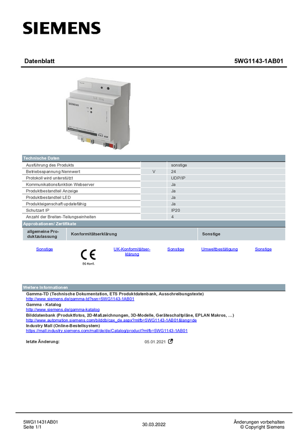 Bramka (Gateway) Siemens 5WG11431AB01 5WG1143-1AB01