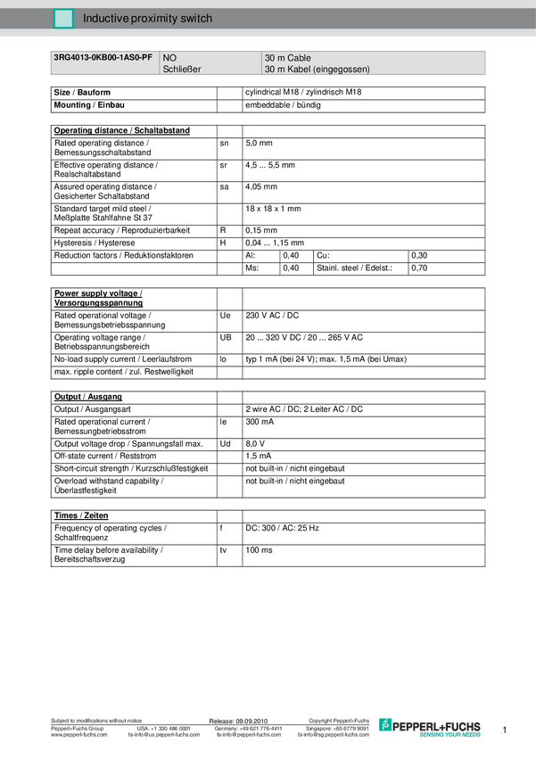 Pepperl+Fuchs Czujnik indukcyjny 3RG4013-0KB00-1AS0-PF