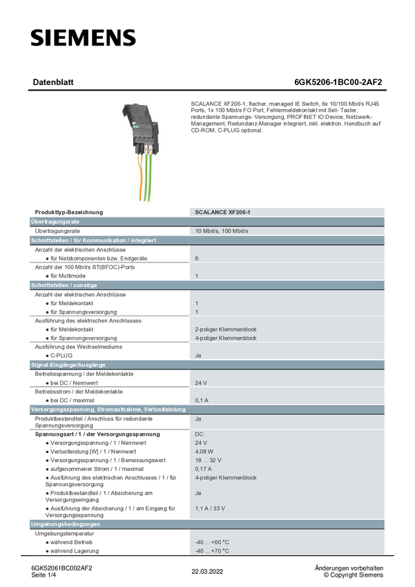 Siemens 6GK5206-1BC00-2AF2 Przemysłowy przełącznik Ethernet 10/100 MBit/s