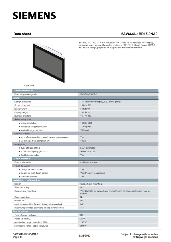 Panel obsługi PLC Siemens 6AV6646-1BD15-0NA0 6AV66461BD150NA0
