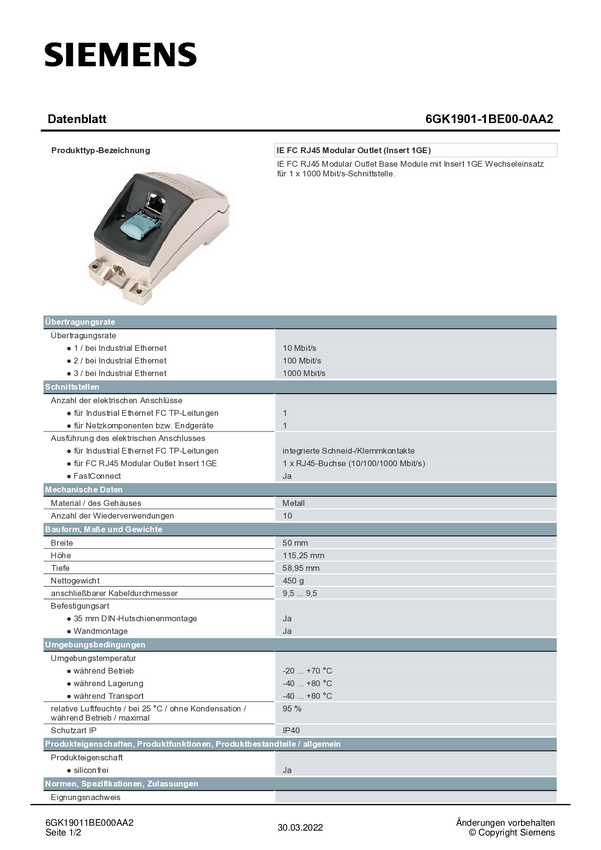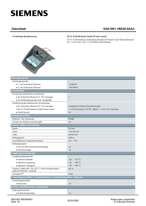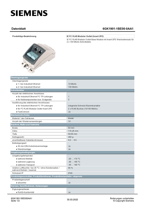 Moduł ethernet Siemens 6GK1901-1BE00-0AA1 6GK19011BE000AA1