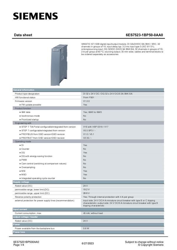 6ES75231BP500AA0