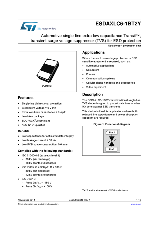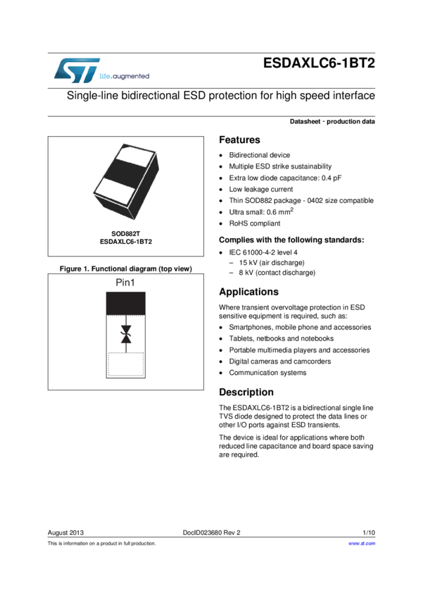 ESD Suppressor TVS 17KV 2-Pin SOD-882 T/R