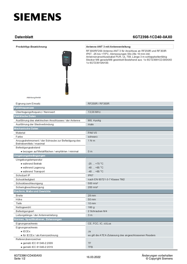 Antena Siemens 6GT2398-1CD40-0AX0 6GT23981CD400AX0