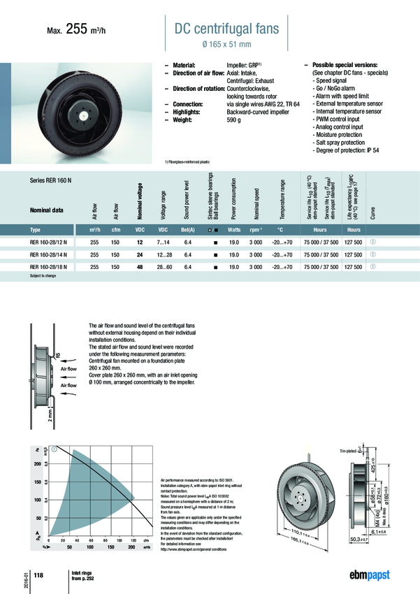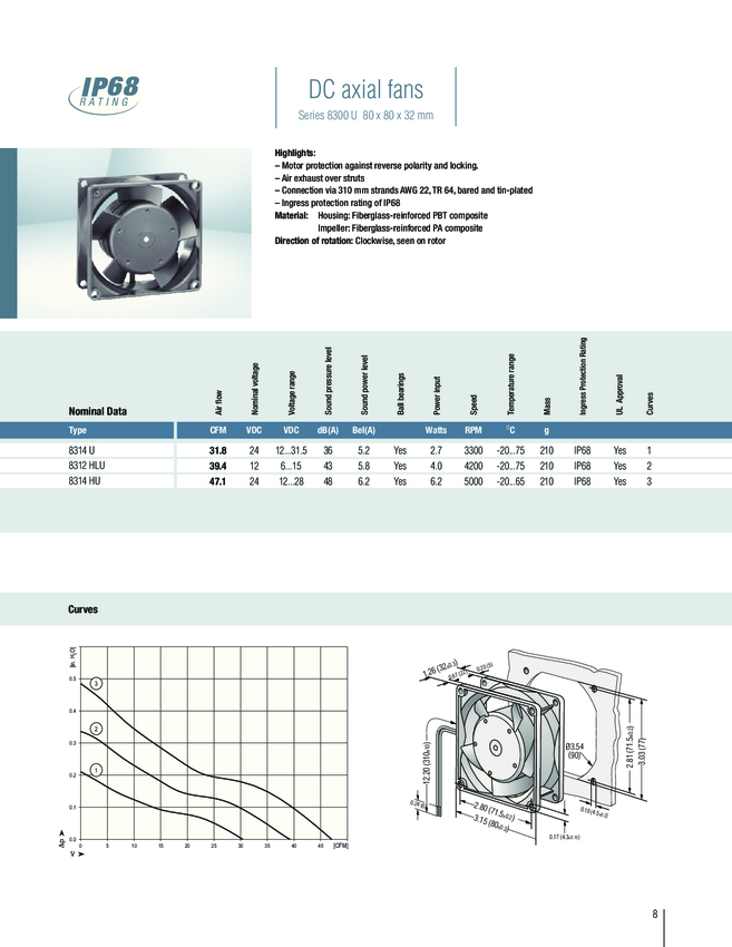 DC Fan Ball Bearing 48V 5W 100.1CFM 45dB Flange Mount
