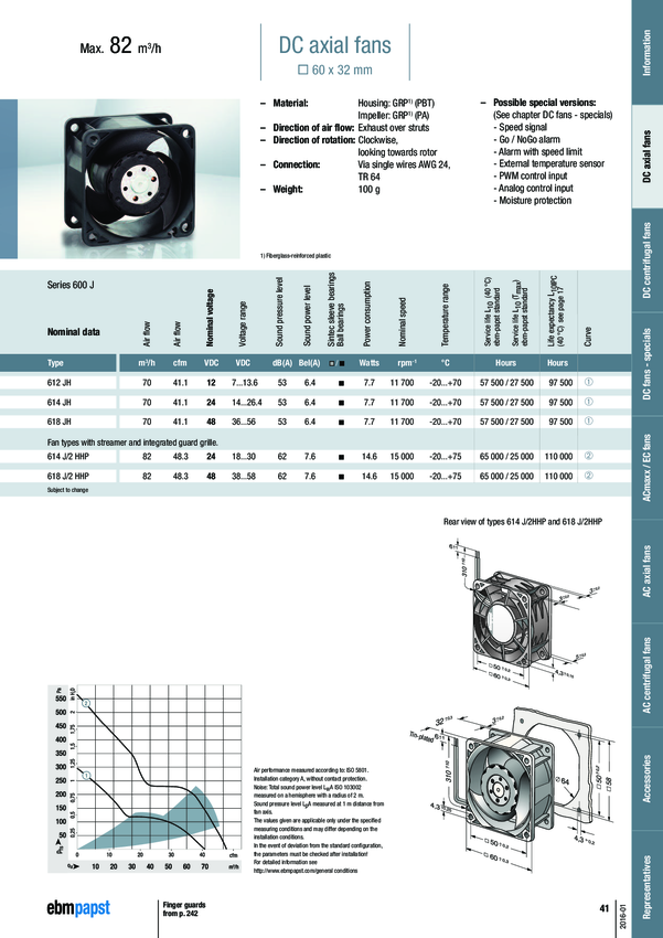 DC Fan Ball Bearing 24V 7.7W 11700RPM 41.1CFM 53dB Flange Mount